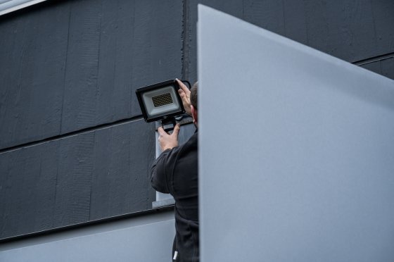 Der LED Strahler JARO 7060 P zur Wandmontage ist ein extrem energieeffizienter LED-Fluter mit 50W Leistung, der höchsten Ansprüchen gerecht wird. Durch die Schutzart IP65 (staubdicht und strahlwassergeschützt) und einer Scheibe aus Sicherheitsglas für zusätzlichen Stoßschutz eignet sich der Fluter sowohl für den Innen- als auch Außeneinsatz. Der Bewegungsmelder mit einstellbarem Dämmerungsschalter ist horizontal und vertikal drehbar und löst bei einem Erfassungsbereich von bis zu 10m und einem 180° Erfassungswinkel automatisch Licht aus. Die Leuchtdauer lässt sich nach Belieben einstellen - von 10 Sekunden bis ca. 5 Minuten. Die verbauten Everlight SMD-LEDs überzeugen durch ihre außergewöhnlich lange Lebensdauer und ihre spezielle Lichtstreuung für großflächige Ausleuchtung. Der Infrarot-Bewegungsmelder sorgt für eine ideale, automatische Ausleuchtung von beispielsweise Eingangsbereichen, Einfahrten oder Carports und dient dadurch für eine erhöhte Sicherheit. Zudem überzeugt die Leuchte durch folgende Eigenschaften: