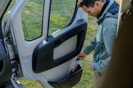 - Integrierter Magnet im Standfuß und drehbarer Haken zum Befestigen