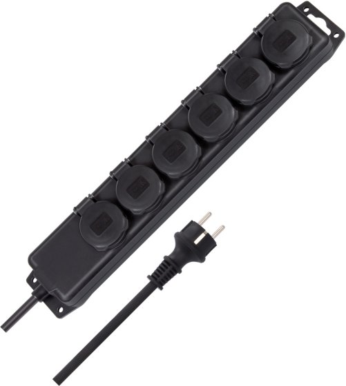 Steckdosenverteiler IP44 6-fach (Steckdosenleiste für den Baustelleneinsatz und den ständigen Einsatz im Freien, 2m Kabel)