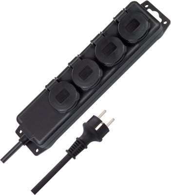 Only extension leads with protection class IP44 or higher are used outdoors. IP44 stands for protection against foreign objects and splashing water. Read more here about the different IP protection classes.